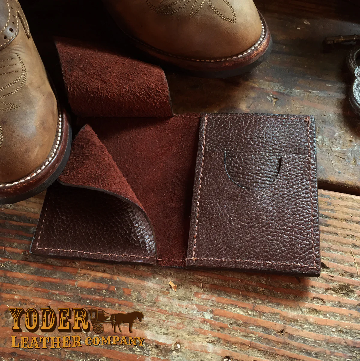This wallet is made with beautiful bison leather that is tanned brown. American Bison is sometimes referred to as Buffalo. It is stitched with heavy duty nylon thread that matches the color of the leather.