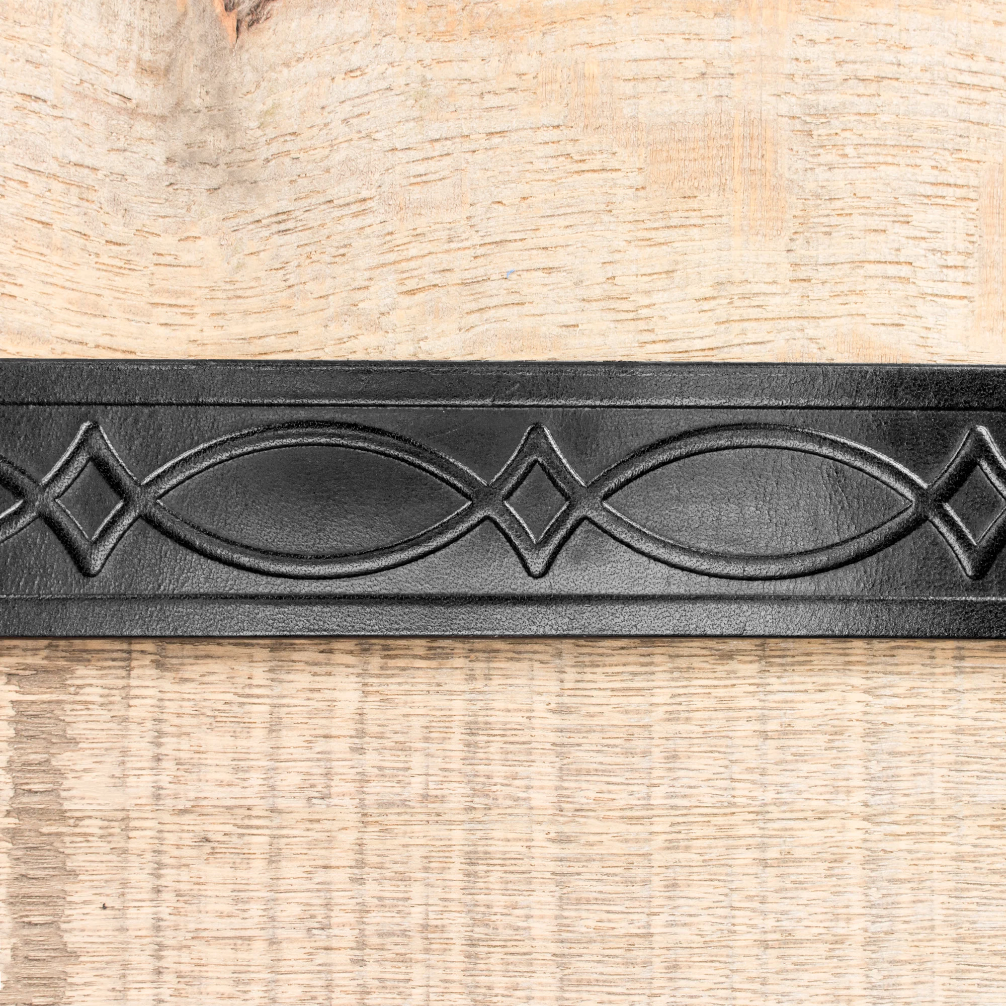 This English Bridle leather isn't your ordinary leather. It's thick and hearty. It's stronger and thicker than anything you'll find in a department store. This particular belt has an embossed classic kent pattern pressed deeply into the leather.